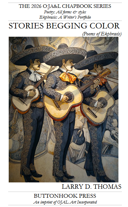 Title: Musing the Crossroads: Poems of the Mississippi River Delta Category of publication: Poetry Pamphlet Publisher: Ojal Art Incorporated, Hot Button Press imprint URL: http://LarryDThomas.com/Thomas.musing- |